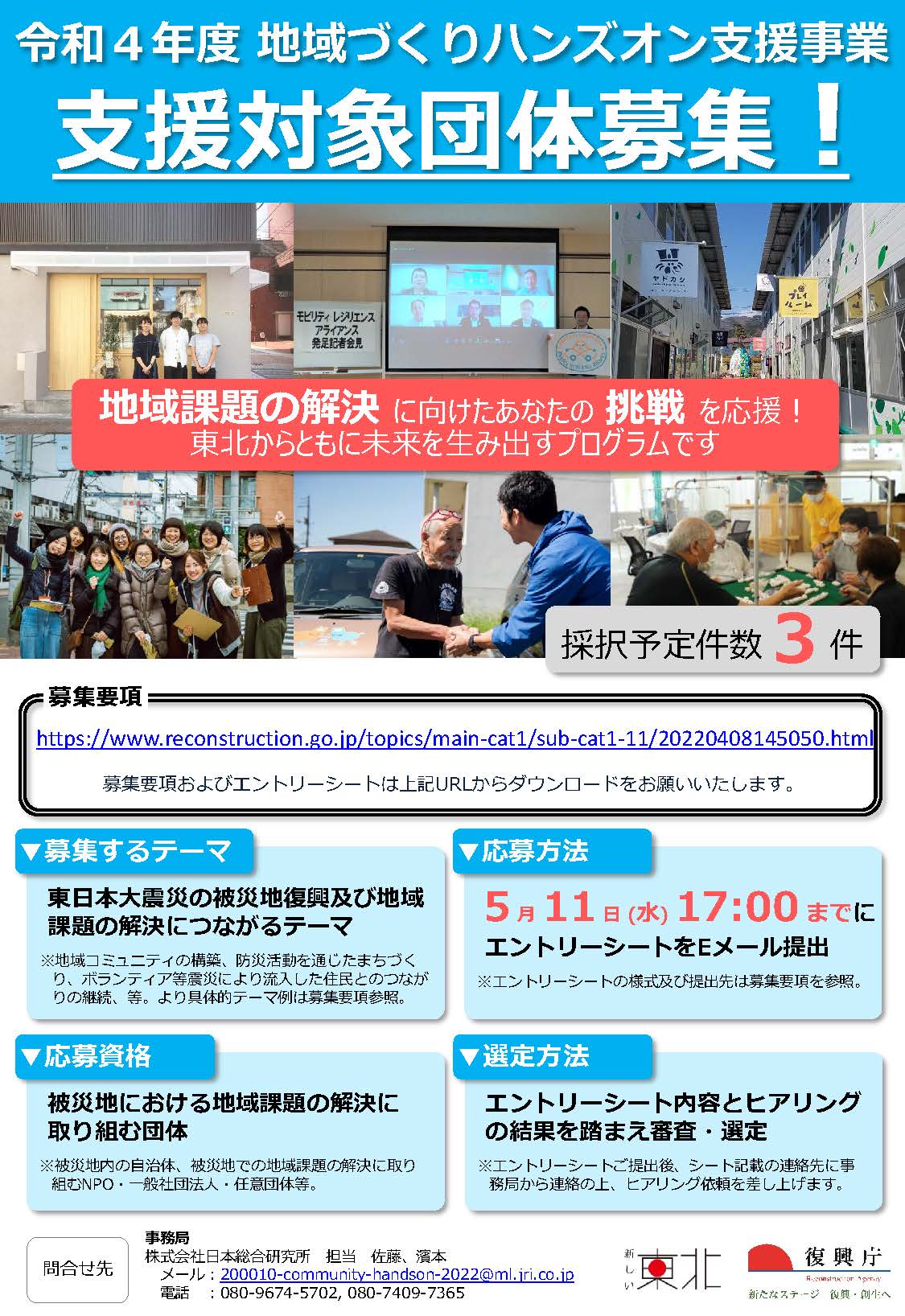 「令和4年度地域づくりハンズオン支援事業」の支援対象団体の募集を開始します。(令和4年度の公募は終了しました)