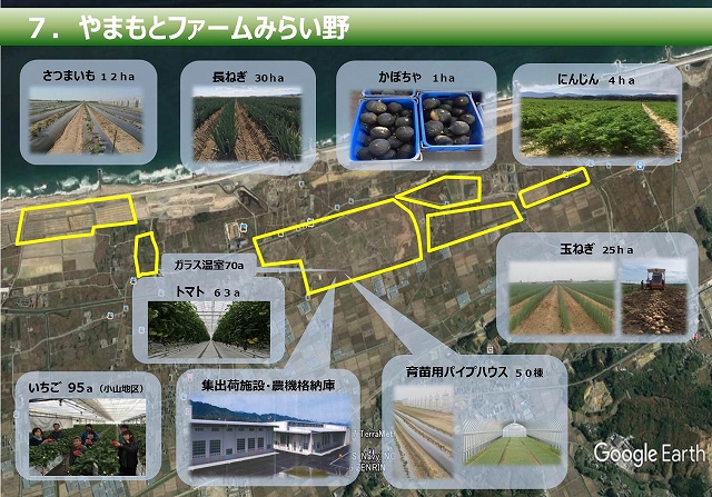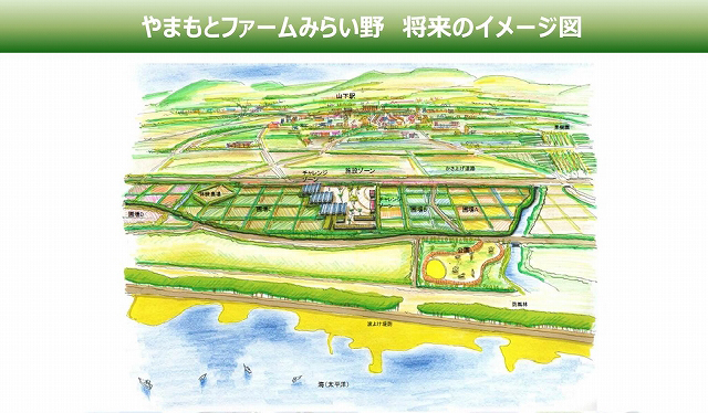 100ha規模の誰も経験したことのない農業の陣頭指揮を執る決意をしたのは、地元農家でJAみやぎ亘理役員の島田孝雄さんだ。島田さんを代表に、株主として地元の若手農家4人が名を連ね、協力企業等の出資を得て2015年7月農業生産法人「やまもとファームみらい野」が創設された。