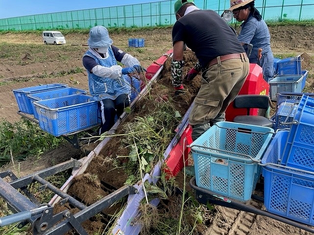 後述する干し芋製造については茨城県の生産者、ネギ栽培については千葉県の生産者に指導を仰いだ。輸出用サツマイモはS・SSサイズの小型が主流だが、皮が傷つきやすいなど取り扱いの難しさから歩留まりが悪い。これらのロスを削減するための研究が今後、農研機構と他生産地との協働で始まる計画だ。これまでサツマイモの売れ筋はLやLLが常識だったが、近年小さいものが好まれるように変化しており、馬場さんは「新しい時代に入ってきた」と話す。