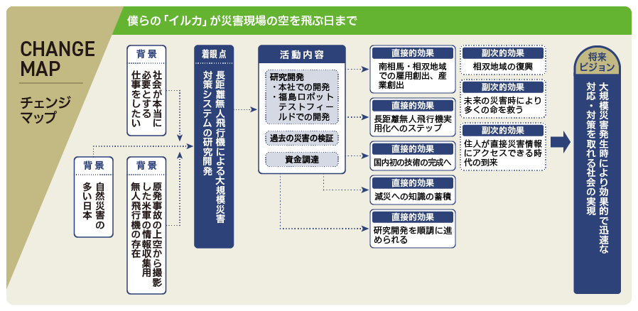 研究開発環境の面では、2019年に南相馬市の福島ロボットテストフィールドに拠点を構えたことが大きなステップとなった。福島ロボットテストフィールドは陸・海・空のフィールドロボットを対象に実際の使用環境を再現しながら研究開発等ができる施設で、福島県が整備したもの。「事業目的の研究開発に使うことができる滑走路は世界でも珍しい。イノベーティブな事業に積極的に支援してくれることもありがたい」と松浦さん。「入居できたおかげで当社の基盤が格段に強固になりました」。原発事故を機に事業を始めた松浦さんにとって福島は思い入れの強い土地。福島イノベーション・コースト構想推進機構、福島相双復興推進機構などとも連携を取りながら発信にも力を入れ、「地元企業との連携や雇用創出の面で、福島の新しい産業に寄与できればうれしい」と将来を見据える。