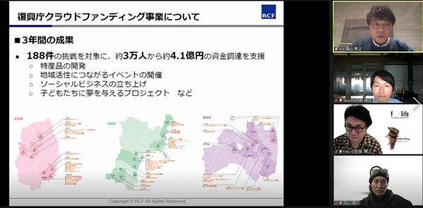 パネリスト:kanakeno(カナケノ) 田山 貴紘氏とSEASON(シーズン) 阿部 将己氏の復興庁クラウドファンディング支援事業での取組は以下をご参照ください。