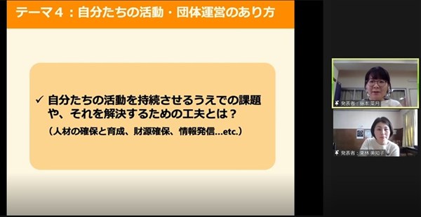 この10年間、被災地で活動を続けてきた地域の若者、地域おこし協力隊、移住者、また地域の人材育成を担う人々の目から見た「地域」はどう映っているのか?若者たちのこれまでの活動内容や気づき・学びをヒントに、「地域の未来」について、参加者とディスカッションしました。