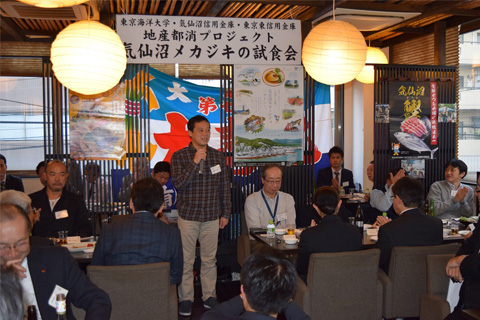 東日本大震災で被災した宮城県気仙沼市の水産業を支援する「地産・都消プロジェクト」の第一弾として、気仙沼信用金庫、東京東信用金庫、東京海洋大学が主催する「墨田区 in 気仙沼メカジキフェア」が連携支援制度に採択されました。同フェアは気仙沼メカジキブランド化推進委員会、気仙沼商工会議所旬の味こうだい(気仙沼市内飲食店)、気仙沼しんきん復興支援基金等との連携の下、平成28年11月17日に開催されました。
