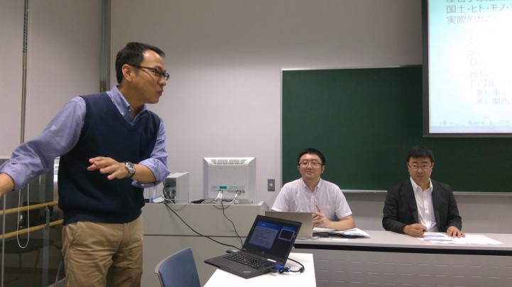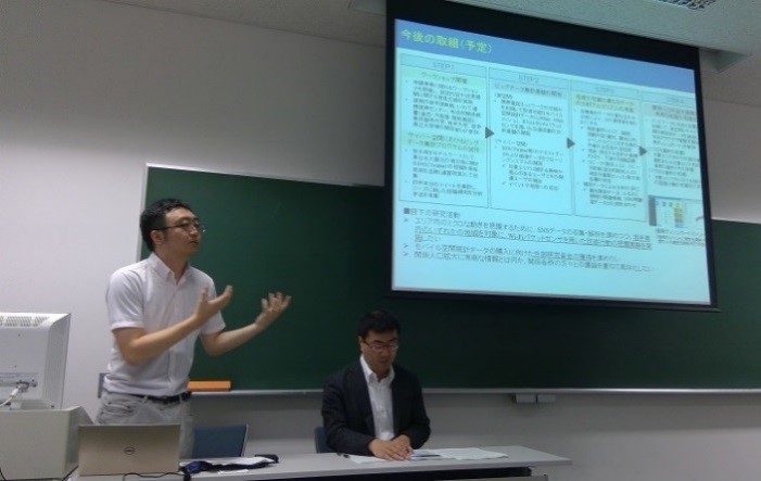 はじめに、国際連合地域開発センターの遠藤和重所長より、ビッグデータを活用した関係人口拡大プロジェクトの概要について紹介いただきました。次に、東京都市大学工学部の今井龍一准教授と、同大学大学院総合理工学研究科の上原渉豊氏より、モバイル空間統計やWi-Fiパケットセンサを用いた都市活動のモニタリング方策について紹介いただきました。最後に、岩手県立大学ソフトウェア情報学部の塚田義典講師より、岩手県に関するSNSデータの集計結果と、人の動きと所感を可視化する復興ダッシュボードについて提案されました。