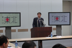 会合の冒頭に、根本復興大臣から挨拶があり、「協議会を通じて、被災地における支援活動や産業再生の取組について情報共有・交換を行い、全国のマンパワーやノウハウ・資金等を東北の地に積極的に提供していただき、真の復興を推進していきたい」との決意が表明されました。