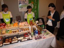 | 郡山市 | 交流会当日のブースでは、猪苗代湖の澄んだ水、肥沃な大地で育った郡山市自慢の農産物や特産品を紹介しました。 | |