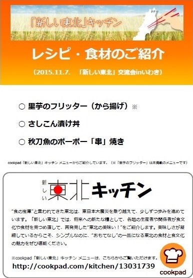 ※「新しい東北」キッチンから提供した料理のレシピはこちら
