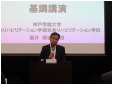 基調講演「共生社会基盤としてのコミュニティ形成」では、神戸や東日本大震災の被災地でコミュニティ形成に実践的に携わる神戸学院大学の藤井博志教授から、地域福祉の観点からみたコミュニティ形成の在り方についてお話いただきました。